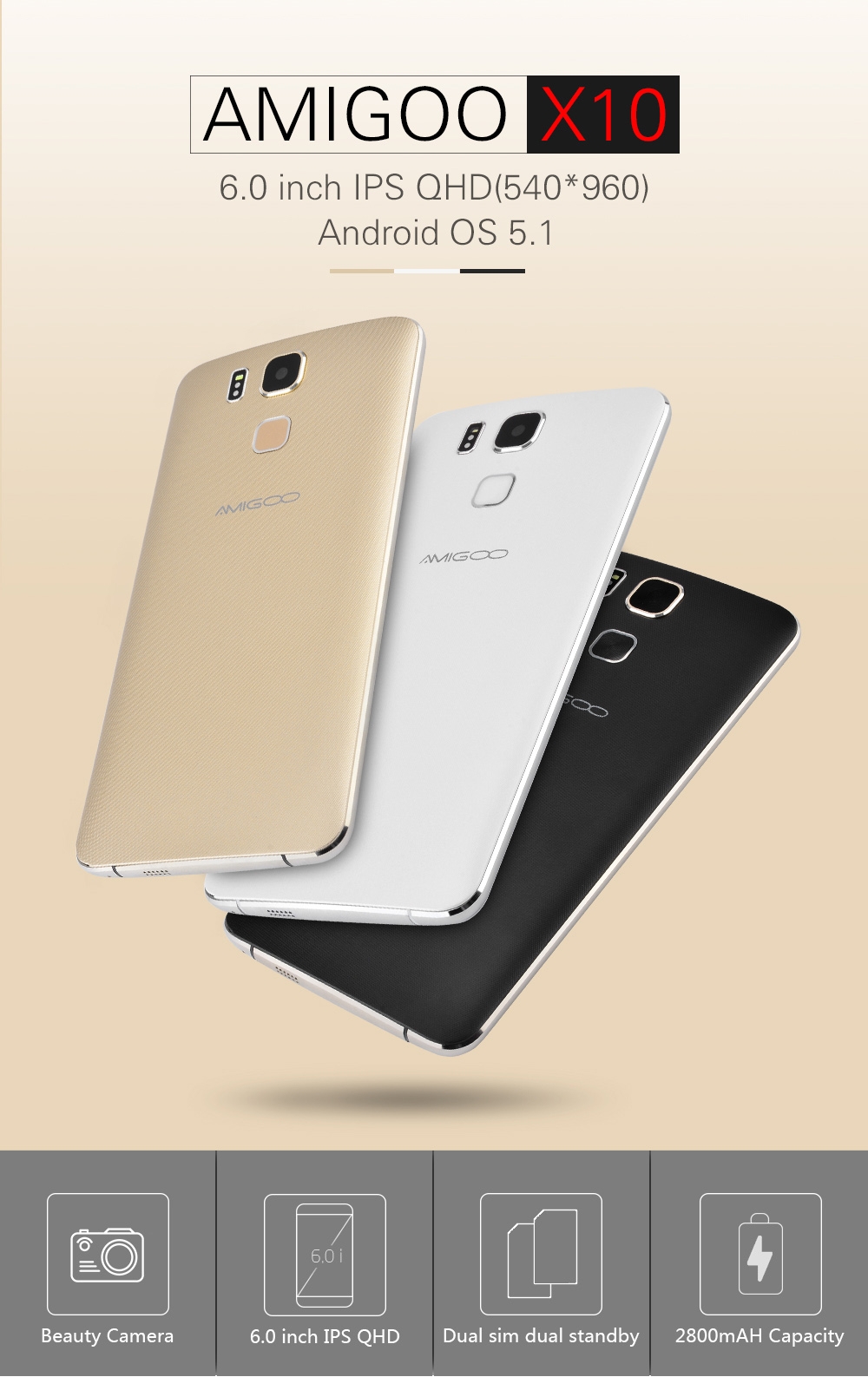 AMIGOO X10 Android 5.1 6.0 inch 3G Phablet MTK6580 1.3GHz Quad Core 8GB ROM Dual Cameras GPS