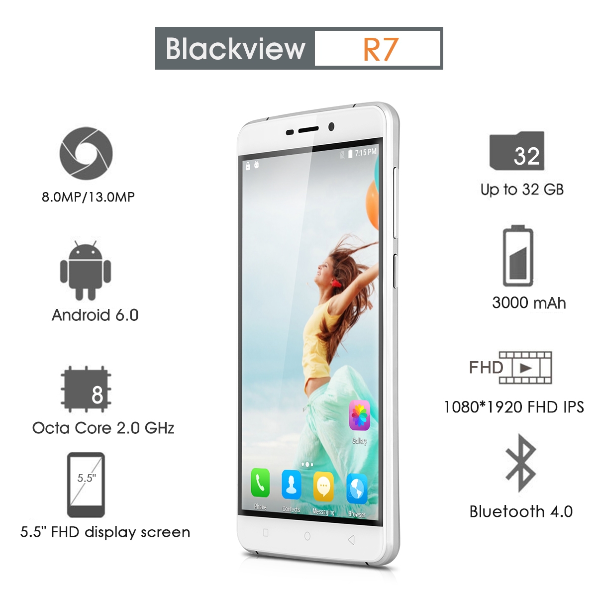 4GB RAM 32GB Up to Max 32G TF Card MT6755 Octa-core 2.0GHz 13.0MP Rear Camera 8.0MP Front Camera 3000mAh GPS