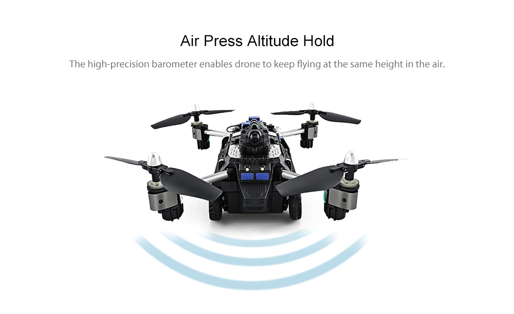 JJRC H40WH features the awe-inspiring 2-in-1 design of RC flying tank and quadcopter. The four retractable / deployable arms make it possible to transform the two modes freely by pressing a button. Equipped with an excellent WiFi camera, you are able to have the 720P HD real-time FPV and control the drone within 5 - 20m away. There is no doubt that this air-ground RC model is sure to bring endless fun for you.