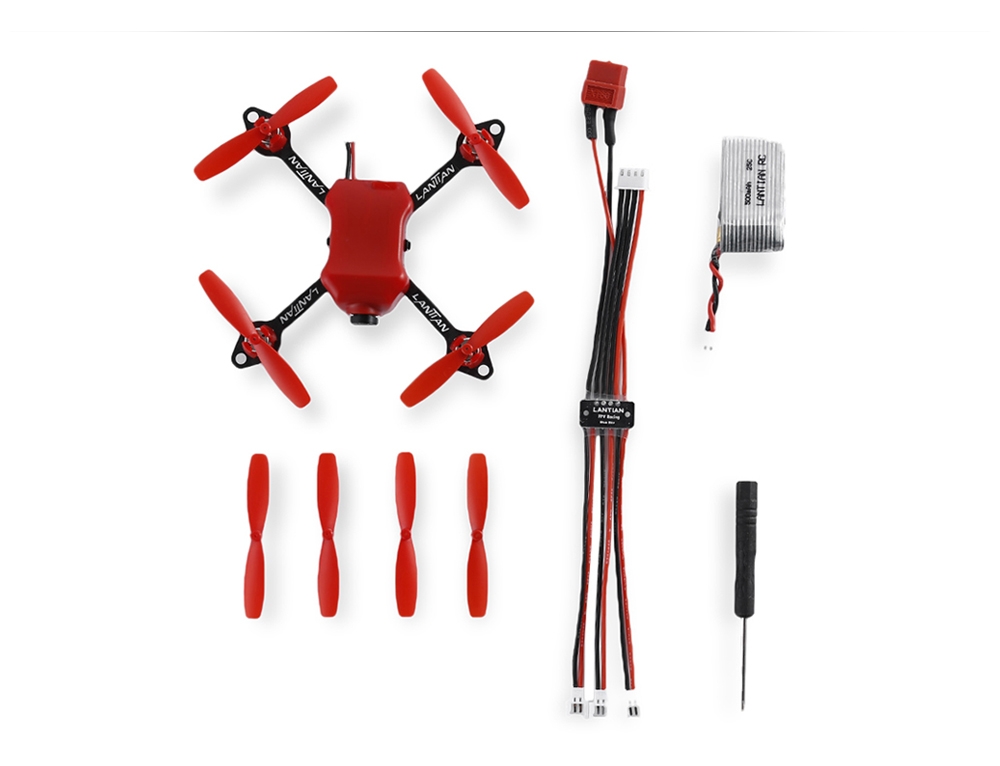 Package Contents: 1 x LT105Pro Racing Drone ( Frame, Motor, Camera, Propeller are Included ), 1 x 500mAh Lithium-ion Battery, 1 x Charging Cable, 4 x Standby Propeller, 4 x Rubber Band, 1 x Screwdriver |