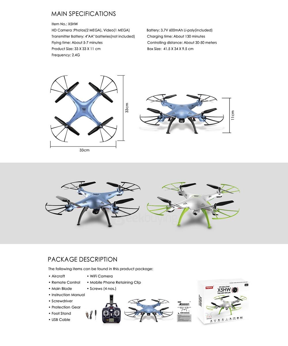 | Quadcopter Battery | 3.7V 500mAh Li-poly(Included) |