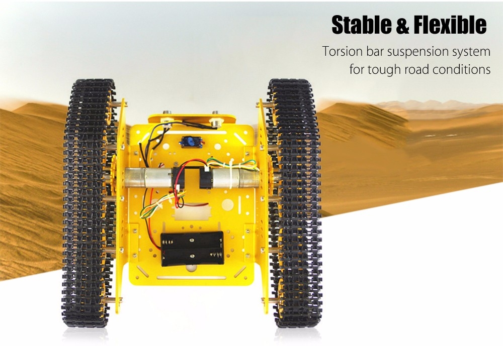 - High trafficability with independent torsion bars. It can run on different kinds of uneven roads steadily
