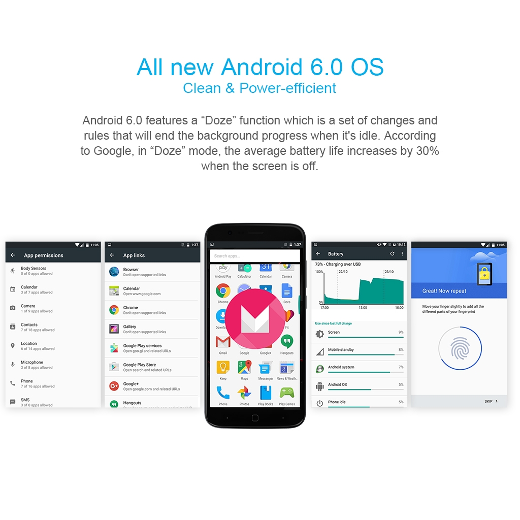 6.0 has been greatly optimized. According to tests, Android 6.0 enables the device life increased by 30%. So Vernee Thor