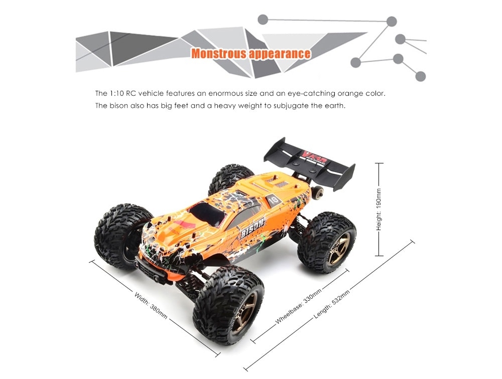 Type: Monster Truck Proportion: 1:10 Motor Type: Brushless Motor Drive Type: 4 WD Material: Alloy,Plastic,Rubber |