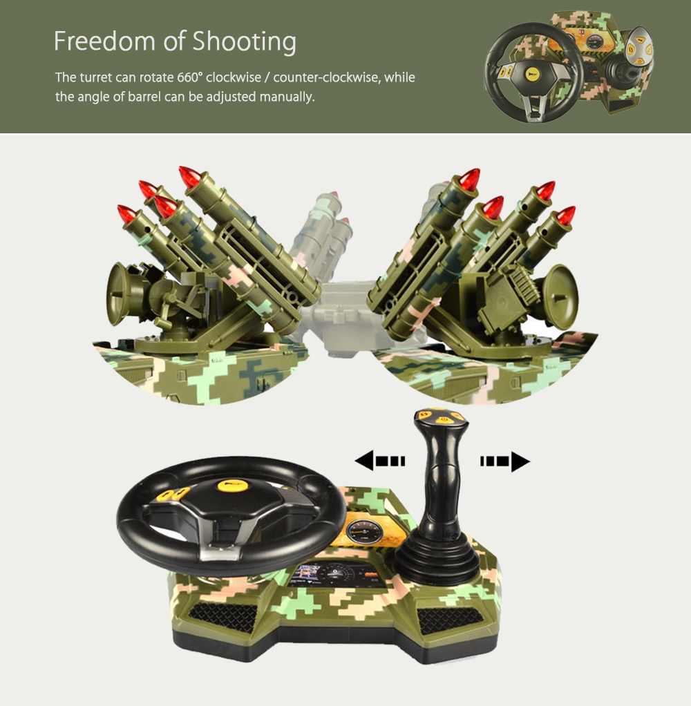 - Sound effect, missile projection simulation, music, LED lighting effect