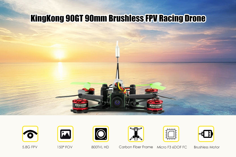 KingKong 90GT FPV racing drone is designed for superior FPV racing. With high PRM brushless motors, it can fly swiftly indoors. Additionally, its 800TVL HD camera offers you the 150-degree angle of view. You're going to be proud of this adorable and powerful aerial robot!