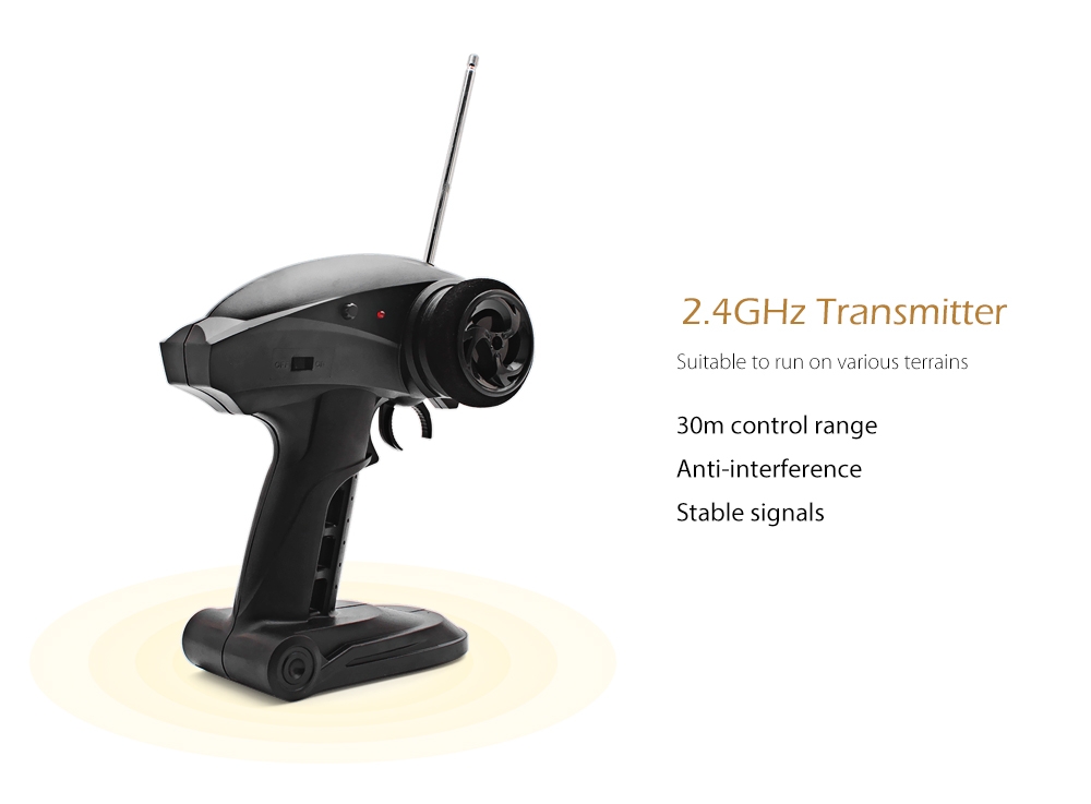Package Contents: 1 x RC Car ( Battery Included ), 1 x Transmitter, 1 x Charger, 1 x English Manual |