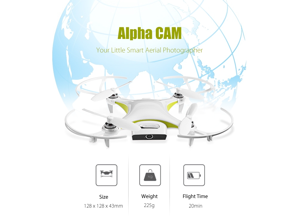 Model: Alpha CAM Features: Brushless Version,Camera,WiFi APP Control,WiFi FPV Motor Type: Brushless Motor Functions: Automatic Return,Automatically Following,Face recognition,Forward/backward,Gravity Sense Control,Hover,Low-voltage Protection,One Key Landing,One Key Taking Off,Point of Interest,Sideward flight,Up/down,Visual Tracking,WiFi Connection Size: Mini Satellite System: GLONASS,GPS Sensor: Infrared Radiation,Optical Flow Built-in Gyro: 6 Axis Gyro Material: Electronic Components,Plastic Kit Types: BNF Level: Intermediate Level |