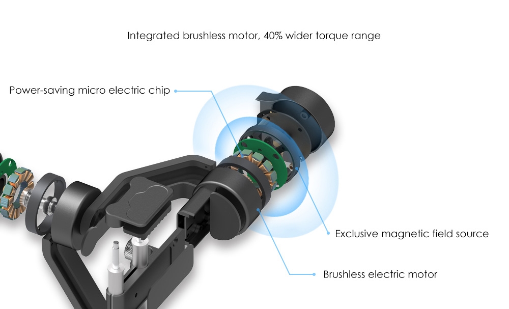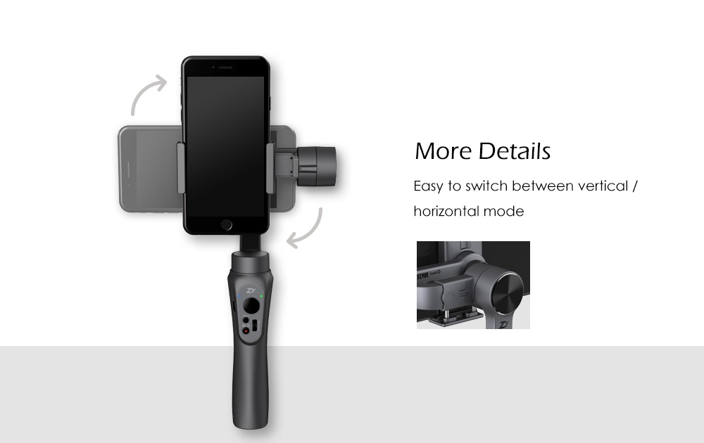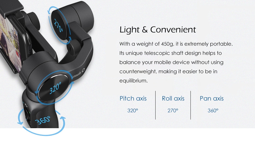 Zhiyun Smooth Q 3-axis brushless gimbal uses the 5th generation Honeycomb processor, which makes the gimbal more powerful - its torque range is 40 percent wider ( two times wider than DJI Osmo mobile ), and its response rate is 30 percent faster than before. This enables multiple accessories to work simultaneously, such as fisheye lens, microphone and etc. It also works well with 6 inch cell phones without counterweight. With 5V 2A output via USB port, the stabilizer can be used as a power bank to charge your mobile device.