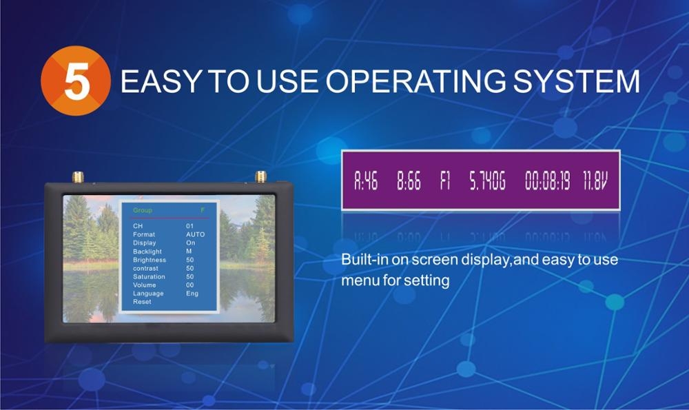 8.On screen display channel,band,input voltage and working time